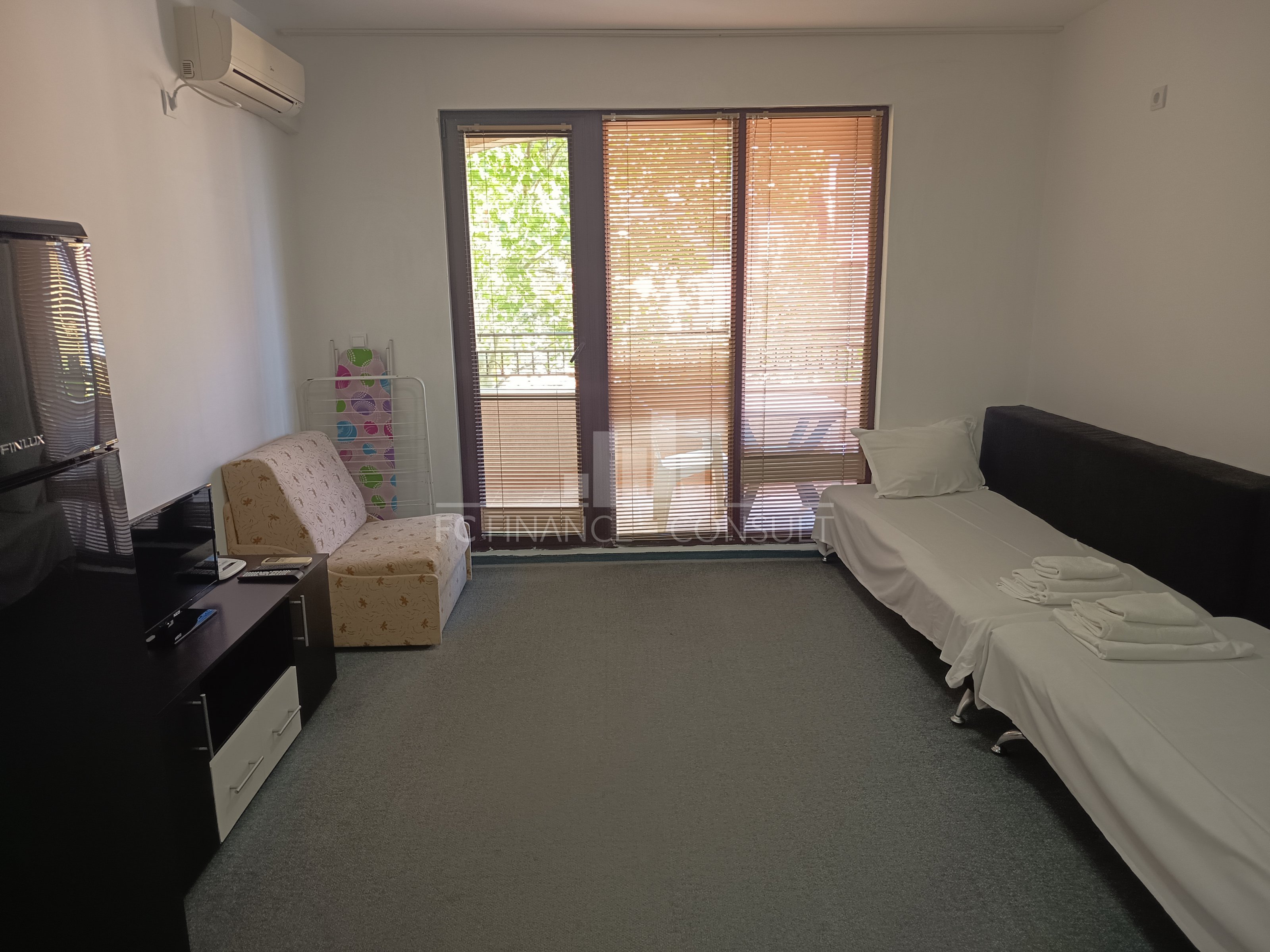 Apartmán o dispozici 1+kk s podlahovou plochou 48 m2 je situován v soukromém plně vybaveném rekreačním komplexu ve 3 patře pětipatrového domu. Rekreační komplex se nachází v lukrativní lokalitě Aheloy ležící v Burgaském zálivu, nedaleko léčivého bahna pomorijských solivarů. Jelikož toto letovisko není příliš známé, zůstává skryto davům turistů a nabízí tak klidnou dovolenou u Černého moře. Rekreační komplex je vzdálený asi 15 minut jízdy od burgaského letiště a je umístěn přímo na jedné z krásných písečných pláží, na které se zároveň nachází malý přístav, v němž kotví jachty a rybářské lodě. Rekreační komplex se rozpíná na ploše 40 000 m2 a skládá se ze 4 jednotlivých areálů/částí. Marina, Cove, Tower a Lighthouse tvoří nezaměnitelnou tvář každého ze svých 750 apartmánů. Každý apartmán má dva vchody, výtah a také balkón či terasu. V celém areálu můžete využít 4 restaurace, mnoho kaváren a barů, 2 bazény s vodními bary, sportovní centrum, squashové kurty, wellness a SPA centrum, masáže, ordinaci praktického lékaře, supermarket a dalších několik menších obchodů s rozmanitou nabídkou nejrůznějšího zboží. V každém apartmánu je také k dispozici internet a kabelová televize. Nemovitost je vhodná nejen k vlastnímu odpočinku a rekreaci, ale i jako investice k pronájmu. Je to ojedinělá možnost letního bydlení v krásném a příjemném prostředí.