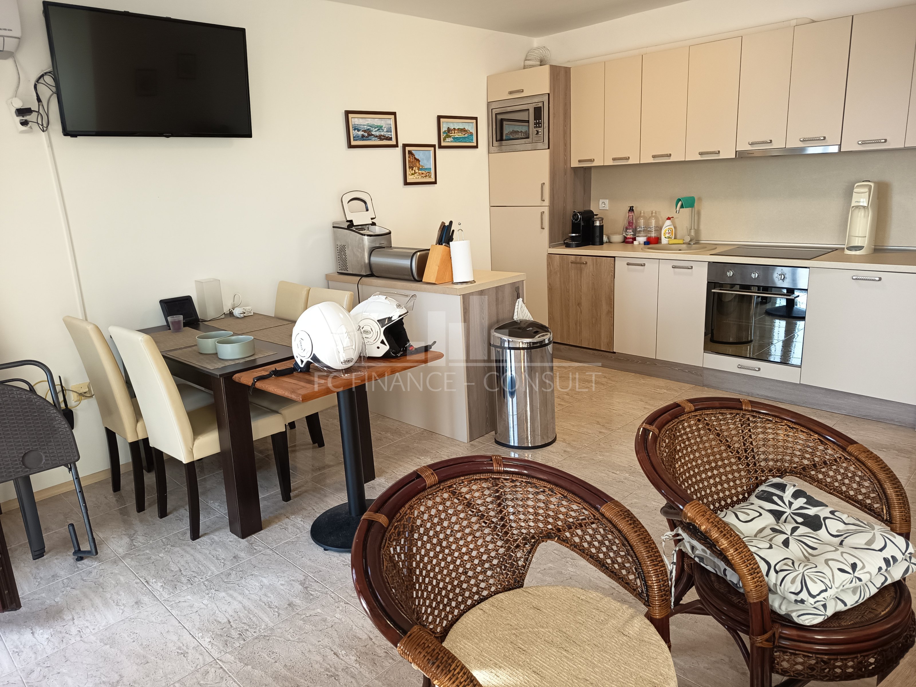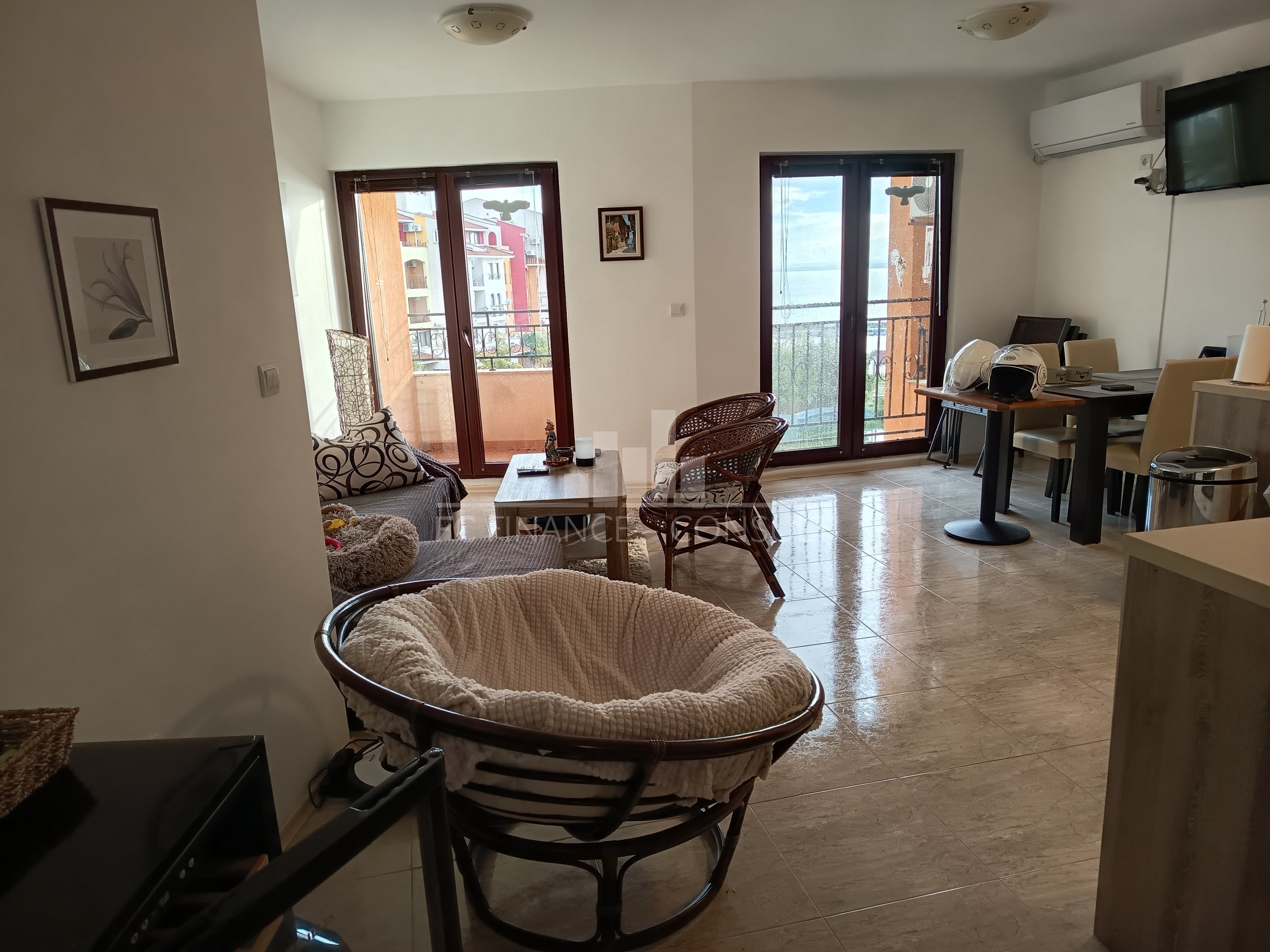 Apartmán o dispozici 3+kk s výhledem na moře, bazén a přístav, o podlahové ploše 90 m², je situován v soukromém, plně vybaveném rekreačním komplexu ve 3. patře pětipatrového domu. Rekreační komplex se nachází v lukrativní lokalitě Aheloy v Burgaském zálivu, nedaleko léčivého bahna pomorijských solivarů. Jelikož toto letovisko není příliš známé, zůstává skryto masovému turismu a nabízí klidnou dovolenou u Černého moře. Komplex je vzdálen přibližně 15 minut jízdy od letiště Burgas a nachází se přímo u jedné z krásných písečných pláží. Součástí pláže je také malý přístav, v němž kotví jachty a rybářské lodě. V rámci areálu lze využívat 4 restaurace, řadu kaváren a barů, 2 bazény s vodními bary, sportovní centrum, squashové kurty, wellness a SPA centrum, masáže, ordinaci praktického lékaře, supermarket a několik menších obchodů s pestrou nabídkou zboží. Samozřejmostí je internetové připojení a kabelová televize v každém apartmánu. Nemovitost je vhodná nejen k vlastní rekreaci, ale také jako investiční příležitost k pronájmu. Jedná se o ojedinělou možnost letního bydlení v krásném a klidném prostředí.