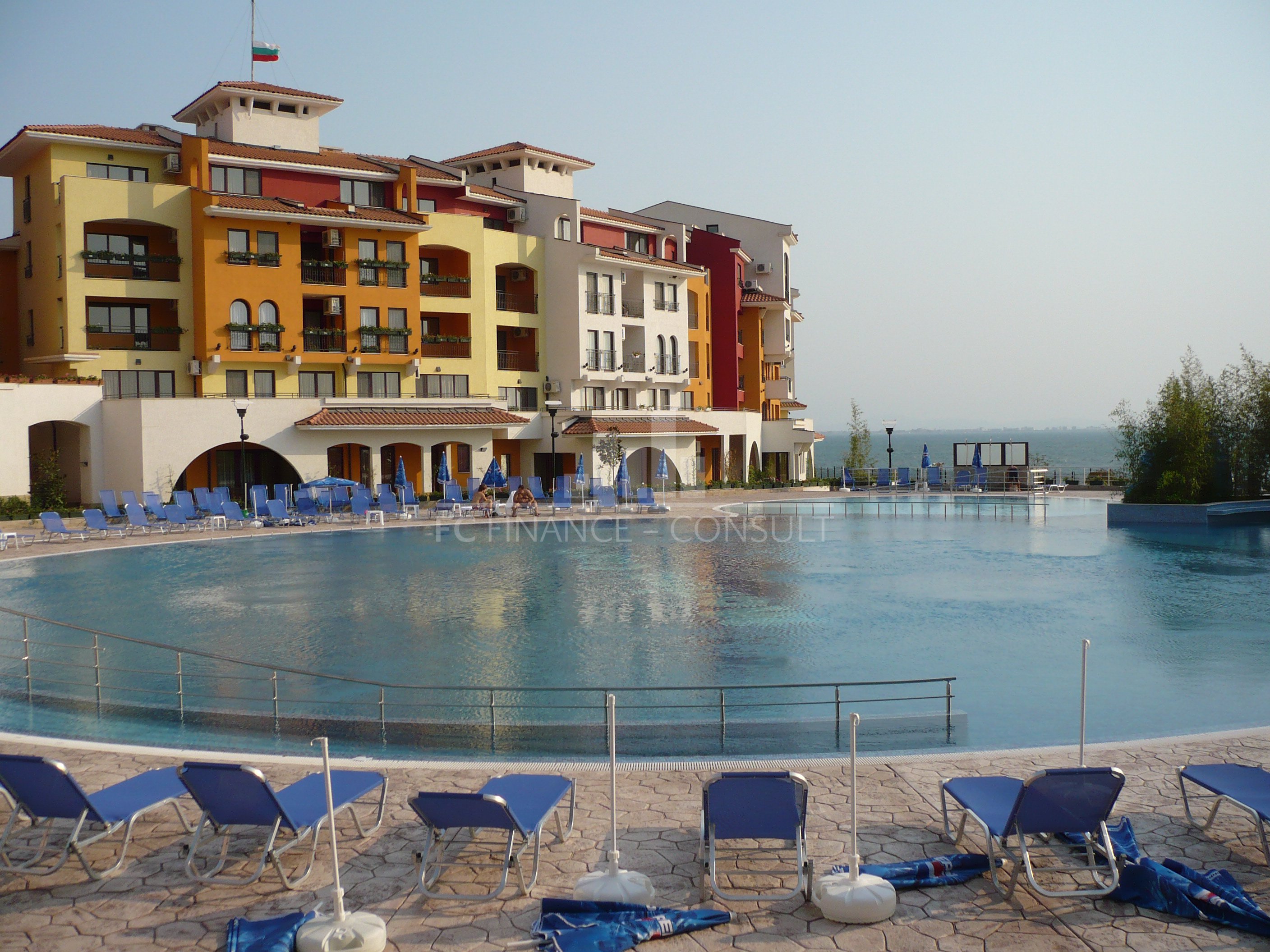 Apartmán o dispozici 2+kk s výhledem na moře s podlahovou plochou 58 m2. Rekreační komplex se nachází v lukrativní lokalitě Aheloy ležící v Burgaském zálivu, nedaleko léčivého bahna pomorijských solivarů. Jelikož toto letovisko není příliš známé, zůstává skryto davům turistů a nabízí tak klidnou dovolenou u Černého moře. Rekreační komplex je vzdálený asi 15 minut jízdy od burgaského letiště a je umístěn přímo na jedné z krásných písečných pláží, na které se zároveň nachází malý přístav, v němž kotví jachty a rybářské lodě. Rekreační komplex se rozpíná na ploše 40 000 m2 a skládá se ze 4 jednotlivých areálů/částí. Marina, Cove, Tower a Lighthouse tvoří nezaměnitelnou tvář každého ze svých 750 apartmánů. Každý apartmán má dva vchody, výtah a také balkón či terasu. V celém areálu můžete využít 4 restaurace, mnoho kaváren a barů, 2 bazény s vodními bary, sportovní centrum, squashové kurty, wellness a SPA centrum, masáže, ordinaci praktického lékaře, supermarket a dalších několik menších obchodů s rozmanitou nabídkou nejrůznějšího zboží.